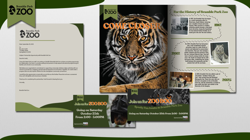 This was a project made to re-imagine marketing for a local business within our community. I chose the Bramble Park Zoo as I love the effort they take to care for and preserve wildlife.